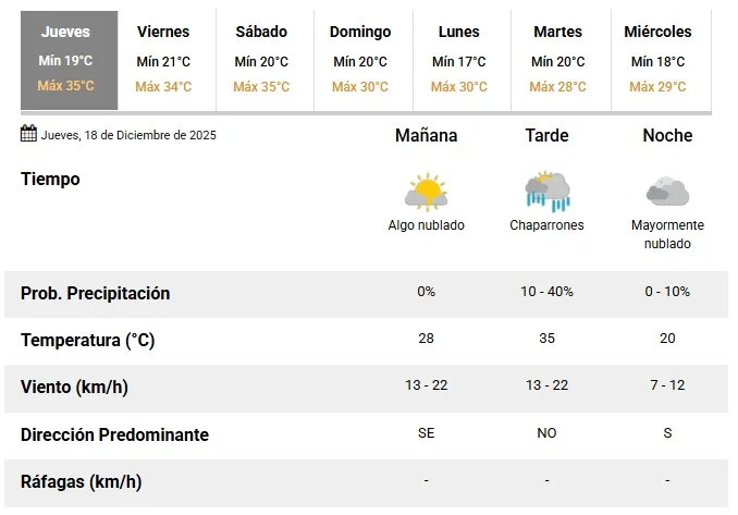 Según informó el Servicio Meteorológico Nacional, SMN, el pronóstico para todo San Juan es de lluvias para la tarde, que irá acompañado por viento del noroeste. La temperatura máxima estará en 35 grados y la mínima en 19 grados.