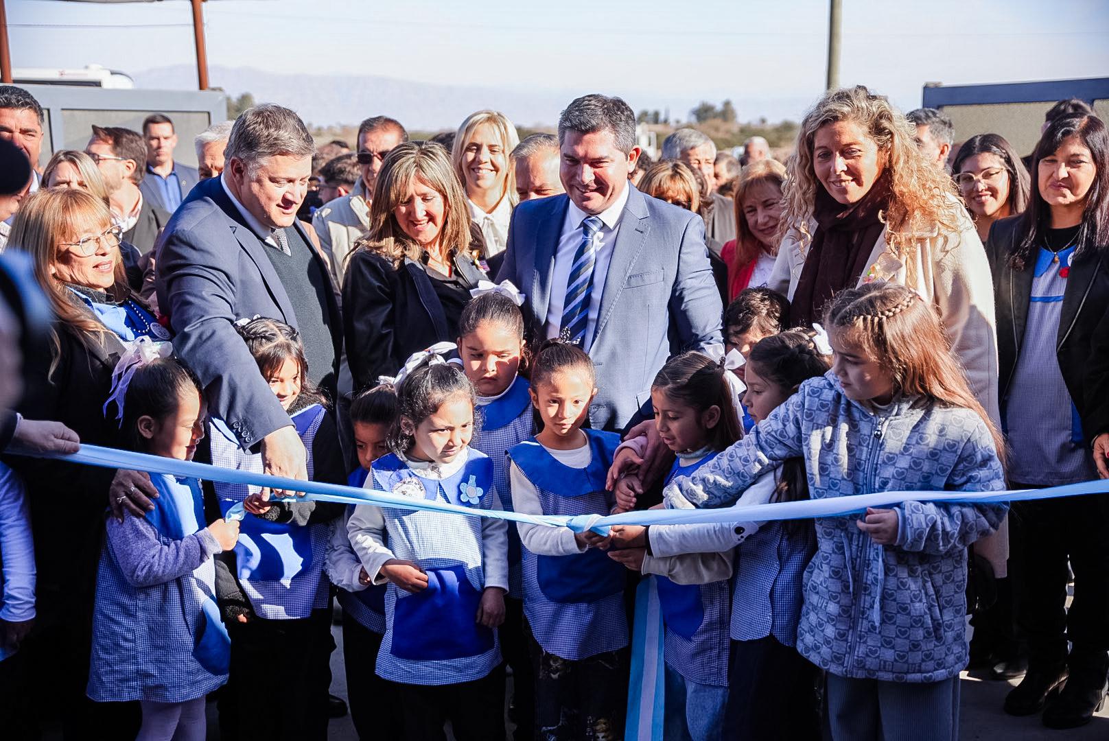 El gobernador Marcelo Orrego encabezó la inauguración del nuevo edificio de la Escuela de Nivel Inicial N° 54 en Santa Rosa, ubicado en calle Enfermera Medina, en el departamento 25 de Mayo. Se trata de una obra largamente esperada por la comunidad educativa, que ahora cuenta con un espacio moderno, funcional y seguro para los primeros años de formación de niñas y niños.