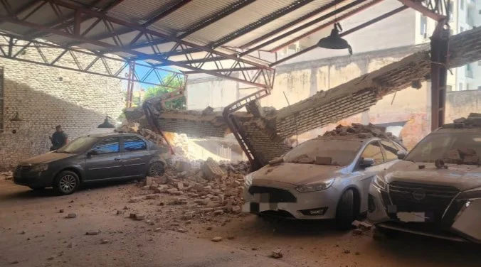 El episodio tuvo lugar sobre la calle Jacinto Ríos al 300, donde una pared de gran tamaño cedió y cayó sobre un galpón que funciona como cochera. Como consecuencia, al menos cuatro vehículos quedaron sepultados bajo los escombros: un Toyota Corolla, un Renault Logan, un Ford Focus y un Nissan Kicks. Afortunadamente, no se reportaron heridos, aunque el susto fue mayúsculo para quienes se encontraban en la zona.