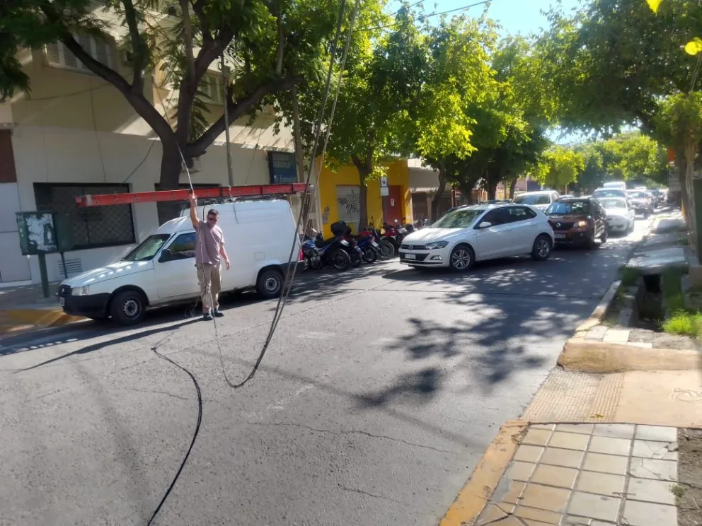 El tendido quedó atravesado sobre la calzada y obliga a los automovilistas a descender de sus vehículos para liberar el paso, generando congestión y riesgo en un sector de alto tránsito de Capital.