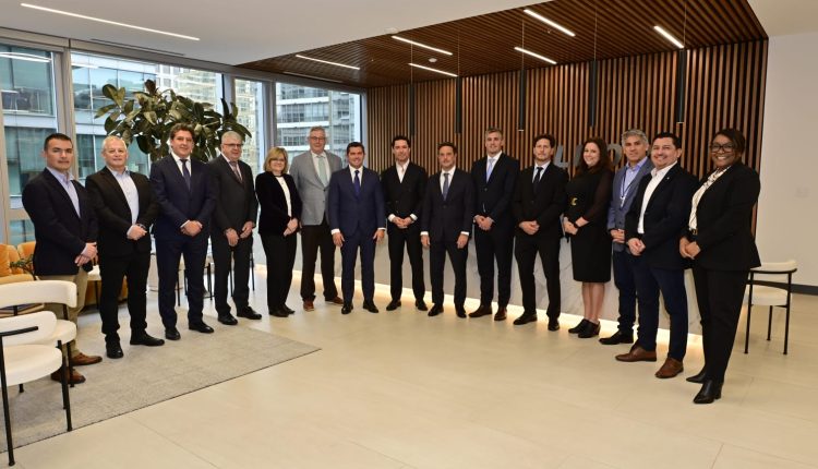 En el marco de su agenda en Vancouver, Canadá, el gobernador Marcelo Orrego se reunió con autoridades de la empresa Fluor: Leonardo Kaid, Vancouver General Manager; Peter Gopfert, Vicuna Project Director; Alex Azparrent, Vicuna Supply Chain Director; Fernando Figueroa, Vicuna Deputy Project Director; y Pablo Latus, Vicuna Project Process Manager.