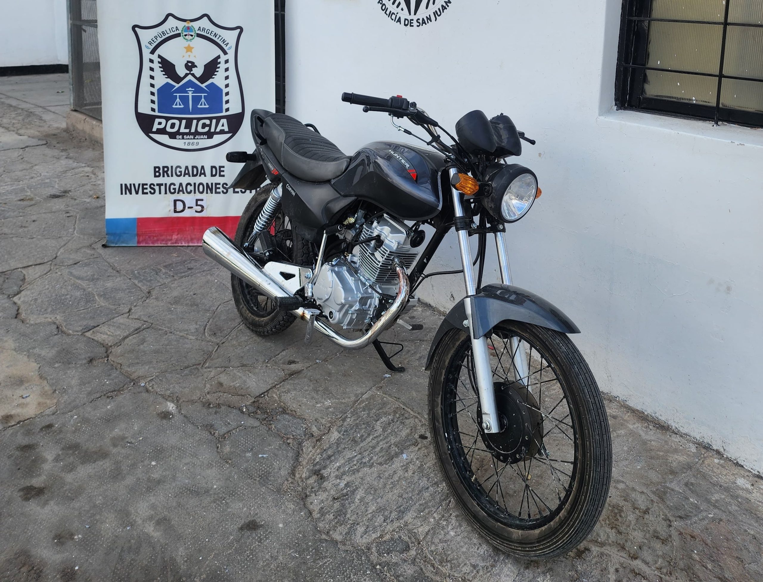 La policía de Caucete recuperó una motocicleta Corven 150cc de color negra que había sido robada del domicilio de la familia Aballay en el Barrio Juan Jofre. Según la denuncia, los delincuentes ingresaron a la propiedad durante la noche y forzaron la traba del manubrio para sustraer el vehículo.