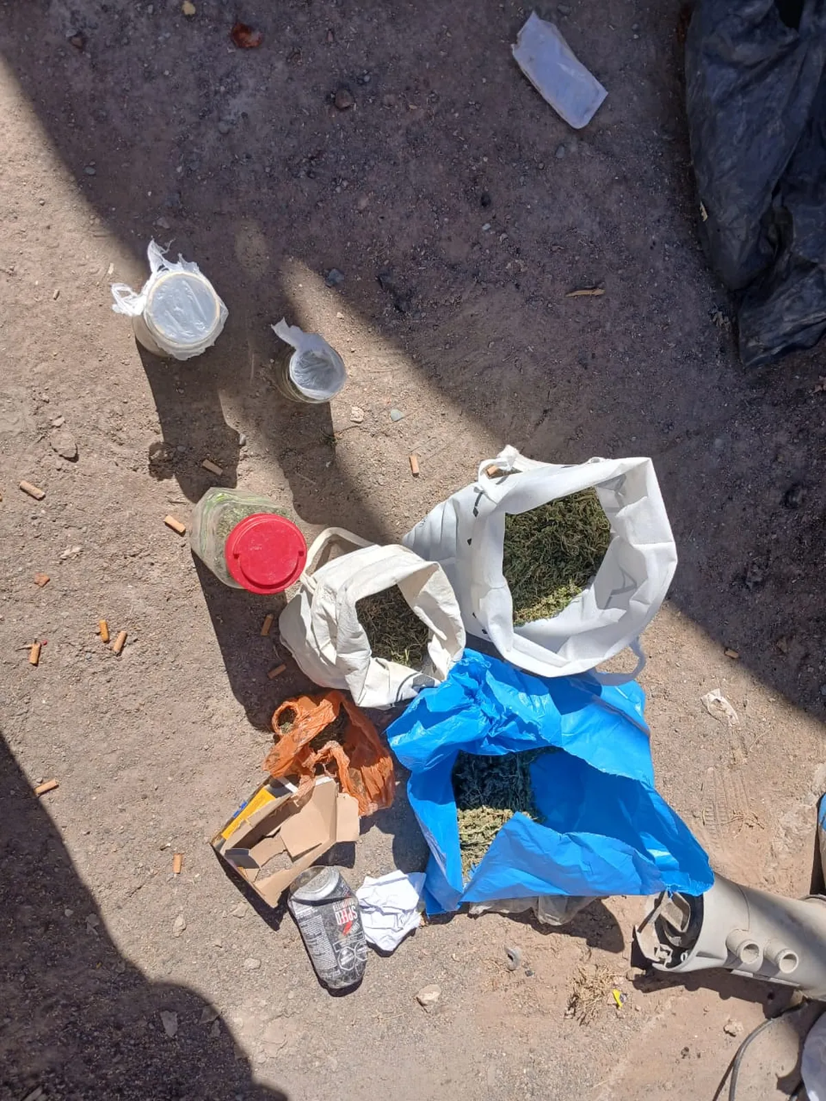 En el Barrio Cuyo, los efectivos también hallaron 1,013 kg de hierbas de planta de cannabis, lo que derivó en la intervención de las autoridades correspondientes por infracción a la ley de estupefacientes.
