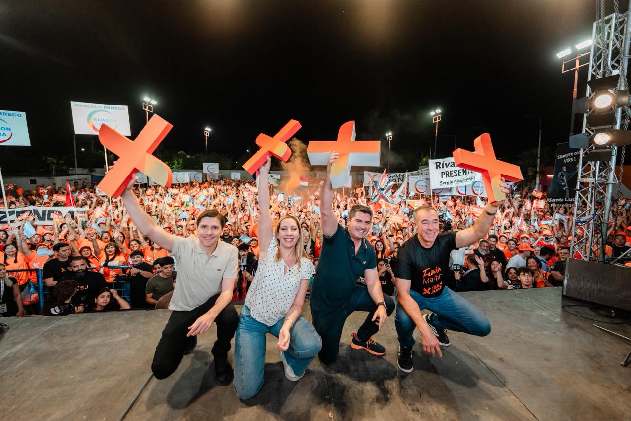 En el escenario rodeados de una multitud, en el que también estuvieron los candidatos suplentes de X San Juan, Eva Acosta, Carlos Jaime y María de los Ángeles Moreno, Orrego agradeció a la militancia por ponerle el corazón a dos meses de trabajo electoral y a los integrantes de la lista por defender los intereses de San Juan.